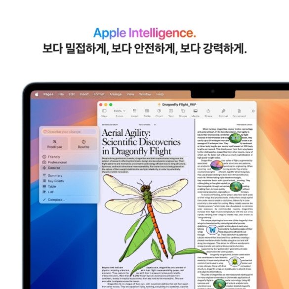 막강한 성능의 M4 칩 탑재—여러 앱을 넘나들며 작업할 때도, 동영상을 편집할 때도, 고사양 그래픽 게임을 플레이할 때도, Apple M4 칩이 무슨 일이든 더 빠르게, 더 매끄럽게 처리해 냅니다. Apple Intelligence를 위한 탄생—Apple Intelligence는 당신이 글을 쓰고, 개성을 표출하고, 이것저것 척척 처리하는 것을 도와주는 개인용 지능 시스템입니다. 혁신적인 개인정보 보호 기능도 갖추고 있어 Apple은 물론 그 누구도 당신의 개인정보에 접근할 수 없으니 안심하고 쓸 수 있죠.1 최대 18시간의 배터리 사용 시간2—MacBook Air는 배터리만으로 작동 중일 때도, 전원에 연결했을 때도 똑같이 놀라운 성능을 선사합니다. 가뿐한 휴대성—엄청나게 가벼운 무게와 1cm 남짓한 두께로 가방에 쏙 들어가는 MacBook Air는 이동이 잦은 당신의 일상에도 자연스레 스며듭니다. 찬란한 디스플레이—34.5cm Liquid Retina 디스플레이가 10억 개의 색상을 지원합니다.3 풍부한 대비와 또렷한 디테일로 사진 및 동영상은 더욱 생생하게, 텍스트는 짱짱한 선명함으로 보여주죠. 당신의 모습과 목소리를 최고의 상태로—12MP Center Stage 카메라가 또렷한 화질을 선사하고, 3개의 마이크, 공간 음향을 지원하는 4개의 스피커가 뛰어난 음질을 선사합니다. 뛰어난 연결성—MacBook Air는 Thunderbolt 4 포트 2개, MagSafe 충전 포트, 헤드폰 잭, Wi-Fi 6E, Bluetooth 5.3을 갖추고 있습니다.4 게다가 외장 디스플레이를 최대 2대까지 지원하죠. 앱을 쏜살같이 빠르게 구동하는 macOS5—Microsoft 365, Adobe Creative Cloud, Google Workspace 등 당신이 즐겨 쓰는 모든 앱이 macOS에서는 전광석화처럼 빠르게 실행됩니다. iPhone을 사랑한다면 Mac도 사랑하기 마련—Mac을 당신의 다른 Apple 기기와 함께 사용하면 마법 같은 경험을 할 수 있습니다. ‘iPhone 미러링’ 기능으로 Mac에서 iPhone 화면을 확인 및 조작할 수 있습니다.6 iPhone에서 복사한 내용을 Mac에 붙여넣을 수도 있죠. Mac에서 ‘메시지’ 앱을 사용해 문자를 보내고, FaceTime 통화를 걸거나 받을 수도 있답니다.7