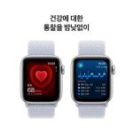 Apple Watch SE가 좋은 이유—늘 의욕적이고 활동적으로 움직이고, 소통을 원활히 이어나가고, 건강 상태를 살피고, 안전을 유지할 수 있도록 도와주는 모든 핵심 기능을 갖추고 있습니다. watchOS 10의 새롭게 디자인된 각종 앱들과 ‘스마트 스택’ 기능은 더 많은 정보를 한눈에 볼 수 있게 도와주죠. ‘충돌 감지’ 같은 안전 기능에1 첨단 운동 현황까지 갖춘 Apple Watch SE는 그 어느 때보다도 탁월한 가성비를 자랑합니다. 탄소 중립—Apple Watch SE(2세대)에 최신 스포츠 루프를 더하면 탄소 중립 조합을 완성할 수 있습니다. 환경을 위한 Apple의 노력에 대해서는 apple.com/kr/2030에서 더 알아보세요.2 셀룰러 연결성—iPhone이 곁에 없어도 문자를 보내고, 전화를 걸고, 음악 및 팟캐스트를 스트리밍할 수 있습니다. 셀룰러 요금제에 가입하면, 그 어느 때보다 더 많은 곳에서 소통을 이어갈 수 있죠.7 건강 및 안전 기능—‘넘어짐 감지’3 및 ‘충돌 감지’, ‘긴급 구조 요청’1 기능은 필요한 순간에 필요한 도움을 줄 수 있습니다. 불규칙한 박동 알림 기능은 비정상적으로 높거나 낮은 심박수 및 불규칙한 박동이 보이면 알림을 보내줍니다.4 탁월한 호환성—당신이 갖고 있는 Apple 기기 및 서비스와 매끄럽게 연동됩니다. Apple Watch로 Mac을 자동으로 잠금 해제할 수 있고, 당신의 기기가 어디에 있는지 모를 때 쉽게 찾을 수도 있죠. 여기에 간편하고 안전한 Apple Pay 결제까지 가능하답니다.5 Apple Watch SE는 iOS 17 이후 버전이 설치된 iPhone XS 이후 모델이 필요합니다. 수영 최적화 성능과 스타일리시한 디자인—50m 방수 등급.6 세 가지 마감. 여기에 마감 컬러에 맞춘 후면 케이스는 탄소 배출량을 감축하도록 설계된 생산 공정을 통해 제작되었습니다. 간편한 사용자화—다양한 스타일과 소재, 색상으로 마련된 밴드 그리고 자신의 취향에 딱 맞게 설정할 수 있는 시계 페이스. 당신의 기분 또는 순간의 분위기에 어울리도록 당신의 시계를 마음껏 꾸밀 수 있습니다. 강력한 피트니스 파트너—‘운동’ 앱은 다양한 트레이닝 방법은 물론, 당신의 운동 성과에 대한 더 깊은 통찰을 마련하는 첨단 운동 수치도 제공합니다. 스마트한 소통—문자를 보내고, 전화를 받고, 음악 및 팟캐스트를 듣고, Siri에게 부탁을 하고, ‘긴급 구조 요청’으로 도움을 요청할 수 있습니다.1 Apple Watch SE (GPS) 모델은 iPhone 또는 Wi-Fi를 통해 소통을 이어갈 수 있게 해주죠. 첨단 건강 기능—불규칙한 박동 알림 기능은 비정상적으로 높거나 낮은 심박수 및 불규칙한 박동이 보이면 알림을 보내줍니다.4 수면 단계를 통해 자는 동안 ‘REM 수면’, ‘코어 수면’, ‘깊은 수면’ 상태에서 각각 얼마나 많은 시간을 보냈는지도 확인할 수 있죠. 당신의 마음 상태를 기록해 감정을 인식하고 회복하는 능력을 키우는 데 도움을 얻을 수도 있답니다. 혁신적인 안전 기능—당신이 심하게 넘어지거나 심각한 자동차 충돌이 발생하면 ‘넘어짐 감지’3 및 ‘충돌 감지’ 기능이 이를 감지하고 응급 서비스에 연결해 줄 수 있습니다.1 그리고 측면 버튼을 길게 눌러 ‘긴급 구조 요청’ 기능으로 도움을 요청할 수도 있죠.
