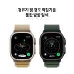 Apple Watch Ultra 2를 선택하는 이유—궁극의 스포츠 및 모험용 시계를 소개합니다. Ultra 2에는 러닝, 사이클, 수영, 하이킹, 다이빙 등 다양한 활동을 즐기는 이들을 위한 각종 첨단 기능이 탑재되었습니다. 극강의 내구성을 자랑하는 티타늄 케이스에 새틴 질감의 블랙 마감이 새롭게 추가되고, 놀랍도록 밝은 상시표시형 Retina 디스플레이와 매우 정확한 정밀 이중 주파수 GPS까지 지원되죠.1 여기에 강력한 건강, 안전 및 연결성 관련 기능2과 더불어 일반 사용 시 최대 36시간, ‘저전력 모드’에서 최대 72시간의 배터리 사용 시간까지 누릴 수 있답니다.3 극강의 내구성, 놀라운 기능성—49mm 내부식성 티타늄 케이스. 사파이어 전면 크리스털. 다양한 기능을 즉시 제어할 수 있게 해주는 커다란 Digital Crown 및 맞춤 설정이 가능한 ‘동작 버튼’. MIL-STD 810H 테스트 진행.4 여기에 100m 방수 등급까지.5 셀룰러가 선사하는 자유—셀룰러 요금제에 가입하면 iPhone을 두고 나와도 전화 통화와 문자를 할 수 있죠.6 좋아하는 음악과 팟캐스트를 스트리밍하고, ‘지도’ 앱에서 길 안내를 받을 수도 있습니다. 운동 효과 극대화—‘운동’ 앱에서 ‘심박수 영역’, ‘사용자 설정 운동’과 같은 각종 첨단 수치, 현황 등을 살펴볼 수 있습니다. 시간이 지남에 따라 운동이 당신의 신체에 어떤 영향을 미치는지 한눈에 볼 수 있게 해주는 ‘훈련량’도 확인할 수 있죠. 달리기 마니아를 위한 기능—놀랍도록 정확한 정밀 이중 주파수 GPS를 갖춘 것은 물론,1 달리기 자세에 관한 첨단 수치들을 통해 얼마나 효율적으로 달리고 있는지 보여줍니다. ‘사용자 설정 운동’ 기능을 활용해 준비 운동, 회복 인터벌, 마무리 운동 시간까지 직접 짤 수 있죠. 사이클 마니아를 위한 기능—유용한 수치들이 사이클 경험을 새로운 차원으로 끌어올려 줍니다. ‘운동 현황’에서는 속도, 심박수, 고도 등을 한눈에 파악할 수도 있죠. 당신이 차고 있는 Apple Watch에서 사이클링 운동을 시작하면, 갖고 있는 iPhone의 ‘실시간 현황’에도 수치가 나타나기 때문에 더 편하게 확인할 수 있습니다. 파워 미터 같은 Bluetooth 액세서리와 직접 연결해 FTP(Functional Threshold Power)와 케이던스 같은 데이터를 보는 것도 가능하죠. 하이킹 마니아를 위한 기능—‘나침반’ 앱에는 현재 방향, 고도, 경위도 등 하이킹을 안전하게 즐기는 데 꼭 필요한 방향 탐색 도구들로 가득 차 있습니다. 셀룰러 신호를 마지막으로 수신한 위치를 확인하고, ‘나침반 경유지’ 기능으로 현재 위치를 표시할 수도 있죠. ‘경로 되짚기’ 기능은 당신이 거쳐온 곳을 기록해 주기 때문에, 지나온 경로를 되짚을 수도 있답니다. 수영 마니아를 위한 기능—‘스트로크 자동 감지’, ‘랩 수’, ‘스플릿’, ‘세트’, ‘수영(수영장)’ 종목을 위한 ‘사용자 설정 운동’ 등 다양한 수영 관련 기능이 마련되어 있습니다. 야외 수영을 즐길 때에는 운동 요약 화면에서 수영 경로 지도를 확인할 수도 있죠. ‘조수’ 앱에서 115,000개가 넘는 전 세계 해변의 조수 상태를 볼 수도 있답니다. 다이빙 마니아를 위한 기능—Oceanic+ 앱이 Apple Watch Ultra 2를 온전한 다이빙용 컴퓨터로 변신시켜 줍니다.7 수온을 측정하고 최대 수심 40m까지 감지할 수도 있죠. 여기에 EN13319 인증까지 획득했답니다. 첨단 건강 및 안전 기능—심전도 검사.8 심장 박동이 불규칙할 때 알림을 받을 수 있습니다.9 야간 건강 수치, 혈중 산소 포화도를 확인할 수도 있습니다. 게다가 ‘REM 수면’, ‘코어 수면’, ‘깊은 수면’ 등 여러 수면 단계에서 어느 정도의 시간을 보냈는지 알 수 있고, 당신이 심하게 넘어지거나 심각한 자동차 충돌이 발생하면 이를 감지하고 자동으로 응급 서비스에 연결해 줄 수도 있죠. 버튼을 눌러 긴급 구조 요청을 하거나 사이렌을 울릴 수도 있답니다.10